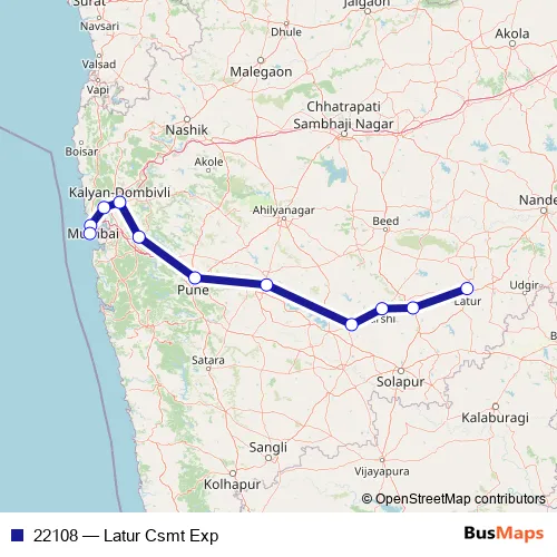 Click here to view the nearest 22108 - Latur Csmt Exp rail stop.