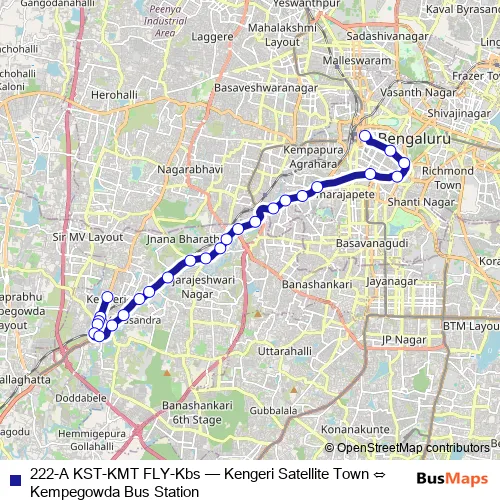 Kempegowda Bus Station. 222-A KST-KMT FLY-Kbs (Kengeri Satellite Town ⇔ Kempegowda Bus Station) is operational during everyday.