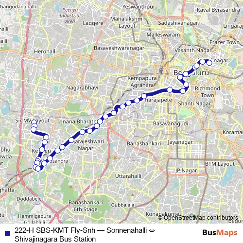 Bmtc 222-H SBS-KMT Fly-Snh bus Route Map