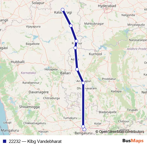 The first stop of the 22232 rail route is Smvt Bengaluru and the last stop is Kalaburagi. 22232 (Klbg Vandebharat) is operational during on weekends.