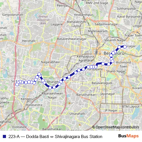 Bus 223-A - Dodda Basti ⇔ Shivajinagara Bus Station in Bengaluru: Stops & Timetable