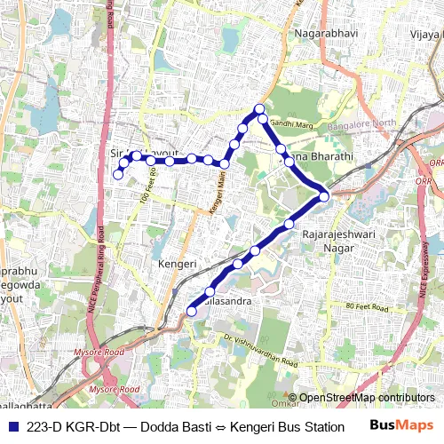 Kengeri Bus Station. 223-D KGR-Dbt (Dodda Basti ⇔ Kengeri Bus Station) is operational during everyday.
