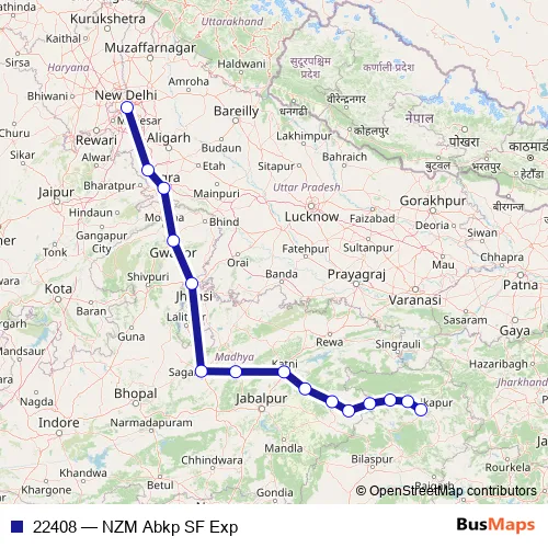 The first stop of the 22408 rail route is Hazrat Nizamuddin Jn and the last stop is Ambikapur. 22408 (NZM Abkp SF Exp) is operational during everyday.