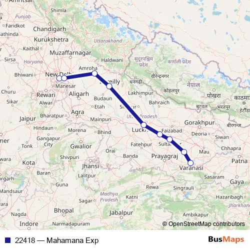 Rail 22418 - Mahamana Exp: Full Schedule in Lucknow