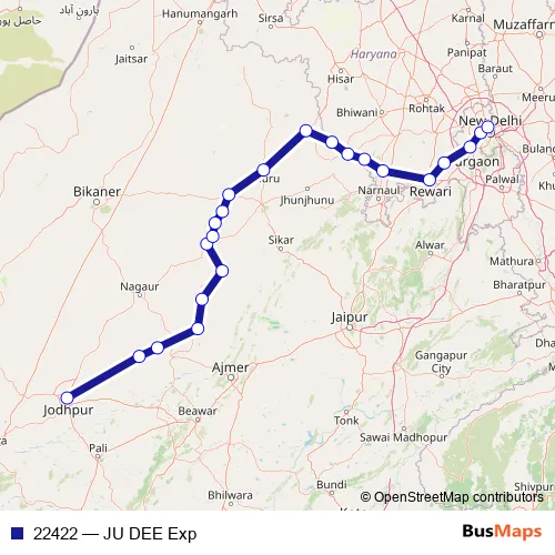 The first stop of the 22422 rail route is Jodhpur Jn and the last stop is Delhi Sarai Rohilla. 22422 (JU DEE Exp) is operational during everyday.