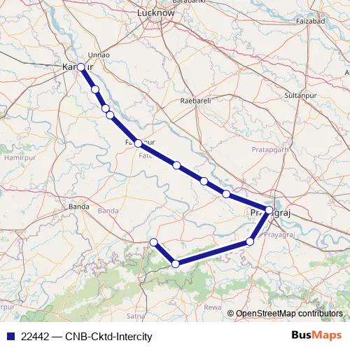 The first stop of the 22442 rail route is Kanpur Central and the last stop is Chitrakot. 22442 (CNB-Cktd-Intercity) is operational during everyday.