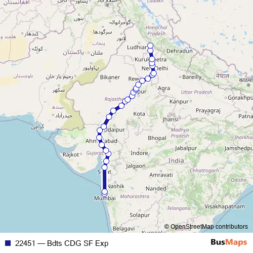 The first stop of the 22451 rail route is Bandra Terminus and the last stop is Chandigarh. 22451 (Bdts CDG SF Exp) is operational during everyday.