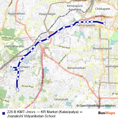 Click here to view the nearest 225-B KMT-Jnsvs - KR Market (Kalasipalya) ⇔ Jnanakshi Vidyaniketan School bus stop.