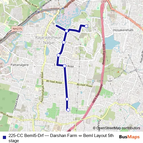 Beml Layout 5th stage. 225-CC Beml5-Drf (Darshan Farm ⇔ Beml Layout 5th stage) is operational during everyday.