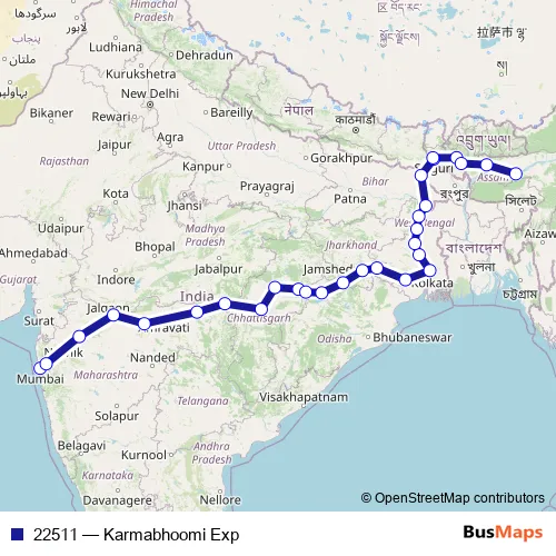 The first stop of the 22511 rail route is Lokmanyatilak and the last stop is Kamakhya. 22511 (Karmabhoomi Exp) is operational during everyday.