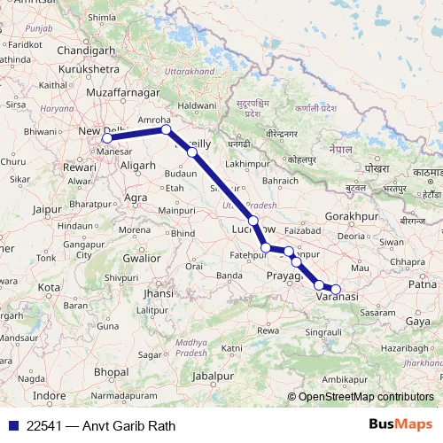 The first stop of the 22541 rail route is Banaras and the last stop is Anand Vihar Terminal. 22541 (Anvt Garib Rath) is operational during everyday.