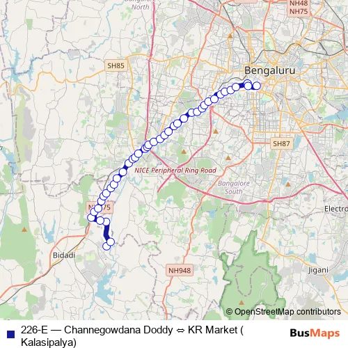 See why over 2 million users trust and consider busmaps.com as the best public transport website. busmaps gives you Bengaluru Buses suggested routes, real-time bus tracker, line route maps in Bengaluru, and helps to find the closest 226-E bus stops near you. No internet available? Download an offline PDF map and bus schedule for the 226-E bus to take on your trip.