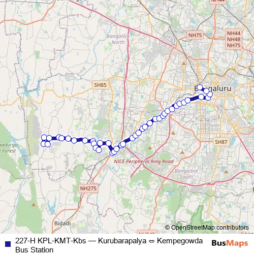 See why over 2 million users trust and consider busmaps.com as the best public transport website. busmaps gives you Bengaluru Buses suggested routes, real-time bus tracker, line route maps in Bengaluru, and helps to find the closest 227-H KPL-KMT-Kbs bus stops near you. No internet available? Download an offline PDF map and bus schedule for the 227-H KPL-KMT-Kbs bus to take on your trip.