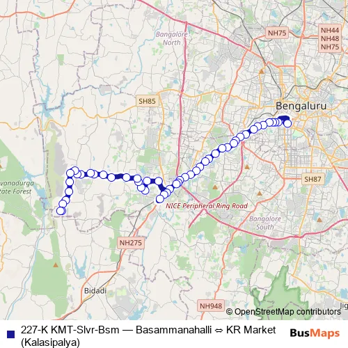 See why over 2 million users trust and consider busmaps.com as the best public transport website. busmaps gives you Bengaluru Buses suggested routes, real-time bus tracker, line route maps in Bengaluru, and helps to find the closest 227-K KMT-Slvr-Bsm bus stops near you. No internet available? Download an offline PDF map and bus schedule for the 227-K KMT-Slvr-Bsm bus to take on your trip.