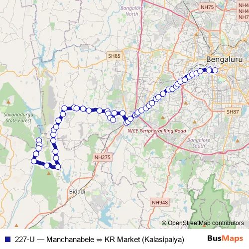Bus 227-U - Manchanabele ⇔ KR Market (Kalasipalya): Full Schedule in Bengaluru