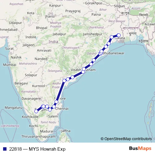 Rail 22818 - MYS Howrah Exp: Full Schedule in Kolkata