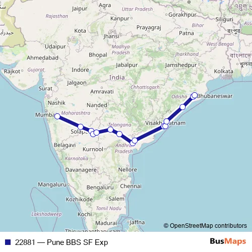 Click here to view the nearest 22881 - Pune BBS SF Exp rail stop.