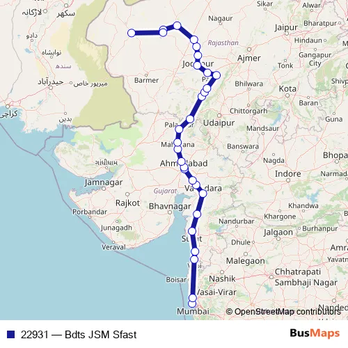 The first stop of the 22931 rail route is Bandra Terminus and the last stop is Jaisalmer. 22931 (Bdts JSM Sfast) is operational during everyday.