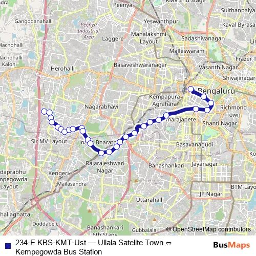 Kempegowda Bus Station. 234-E KBS-KMT-Ust (Ullala Satelite Town ⇔ Kempegowda Bus Station) is operational during everyday.