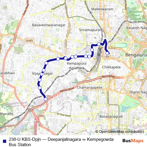 See why over 2 million users trust and consider busmaps.com as the best public transport website. busmaps gives you Bengaluru Buses suggested routes, real-time bus tracker, line route maps in Bengaluru, and helps to find the closest 238-U KBS-Dpjn bus stops near you. No internet available? Download an offline PDF map and bus schedule for the 238-U KBS-Dpjn bus to take on your trip.