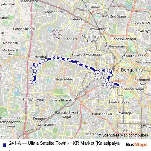 Click here to view the nearest 241-A - Ullala Satelite Town ⇔ KR Market (Kalasipalya) bus stop.