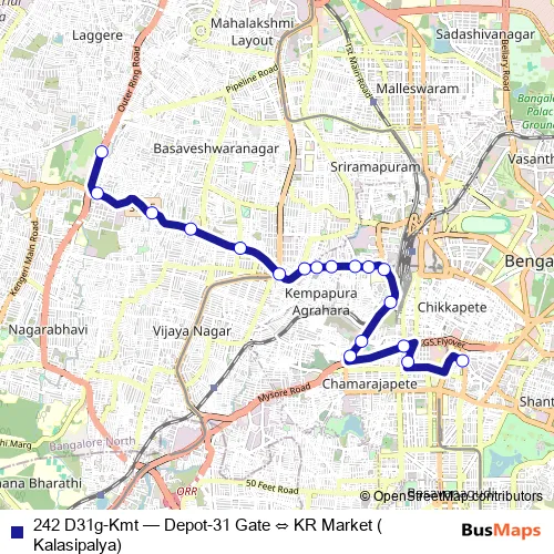 Click here to view the nearest 242 D31g-Kmt - Depot-31 Gate ⇔ KR Market (Kalasipalya) bus stop.