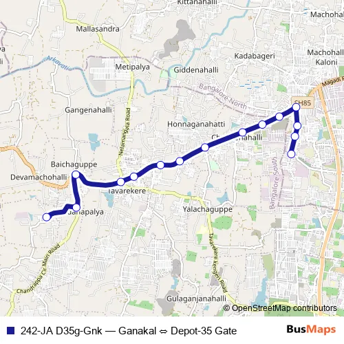 See why over 2 million users trust and consider busmaps.com as the best public transport website. busmaps gives you Bengaluru Buses suggested routes, real-time bus tracker, line route maps in Bengaluru, and helps to find the closest 242-JA D35g-Gnk bus stops near you. No internet available? Download an offline PDF map and bus schedule for the 242-JA D35g-Gnk bus to take on your trip.