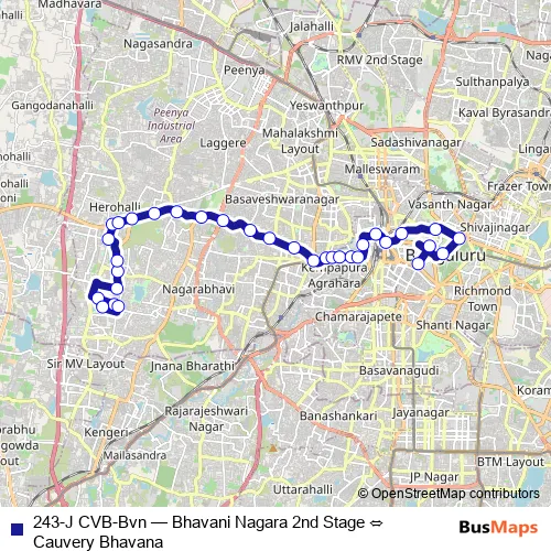 Bus 243-J CVB-Bvn - Bhavani Nagara 2nd Stage ⇔ Cauvery Bhavana: Full Schedule in Bengaluru