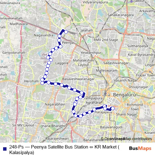Bus 248-Ps - Peenya Satellite Bus Station ⇔ KR Market (Kalasipalya) in Bengaluru: Stops & Timetable