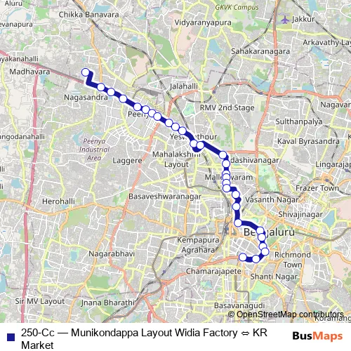 Bus 250-Cc - Munikondappa Layout Widia Factory ⇔ KR Market: Full Schedule in Bengaluru