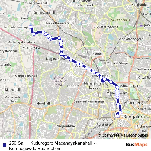 See why over 2 million users trust and consider busmaps.com as the best public transport website. busmaps gives you Bengaluru Buses suggested routes, real-time bus tracker, line route maps in Bengaluru, and helps to find the closest 250-Sa bus stops near you. No internet available? Download an offline PDF map and bus schedule for the 250-Sa bus to take on your trip.