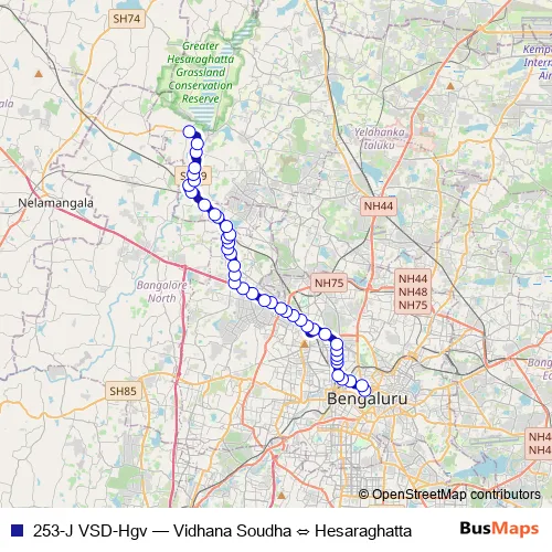 Bus 253-J VSD-Hgv - Vidhana Soudha ⇔ Hesaraghatta Schedule in Bengaluru