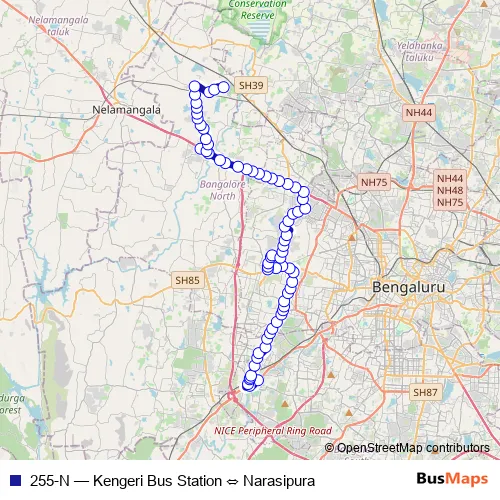 The first stop of the 255-N bus route is Kengeri Bus Station and the last stop is Narasipura. 255-N (Kengeri Bus Station ⇔ Narasipura) is operational during everyday.