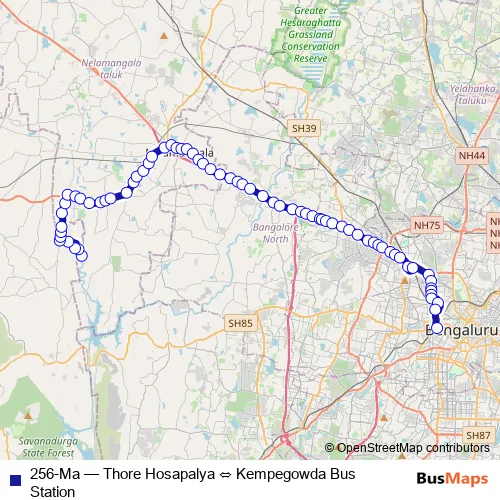 The first stop of the 256-Ma bus route is Thore Hosapalya and the last stop is Kempegowda Bus Station. 256-Ma (Thore Hosapalya ⇔ Kempegowda Bus Station) is operational during everyday.
