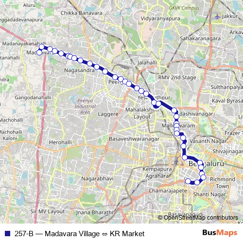 Bus 257-B - Madavara Village ⇔ KR Market: Full Schedule in Bengaluru