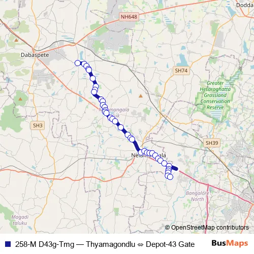 Click here to view the nearest 258-M D43g-Tmg - Thyamagondlu ⇔ Depot-43 Gate bus stop.