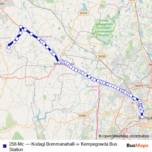 Bus 258-Mc - Kodagi Bommanahalli ⇔ Kempegowda Bus Station: Full Schedule in Bengaluru