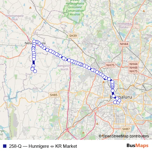 Bus 258-Q - Hunnigere ⇔ KR Market: Full Schedule in Bengaluru
