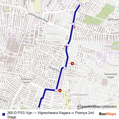 See why over 2 million users trust and consider busmaps.com as the best public transport website. busmaps gives you Bengaluru Buses suggested routes, real-time bus tracker, line route maps in Bengaluru, and helps to find the closest 265-D PSS-Vgn bus stops near you. No internet available? Download an offline PDF map and bus schedule for the 265-D PSS-Vgn bus to take on your trip.
