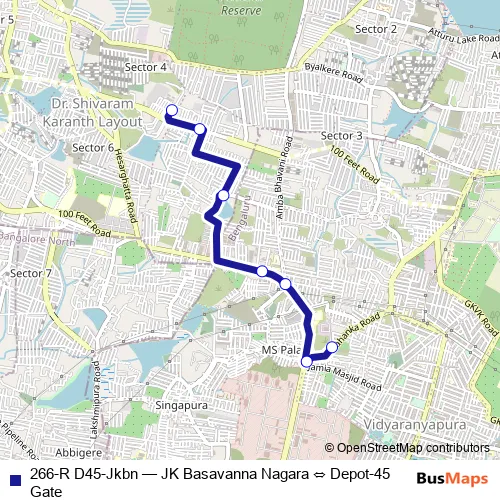 Click here to view the nearest 266-R D45-Jkbn - JK Basavanna Nagara ⇔ Depot-45 Gate bus stop.