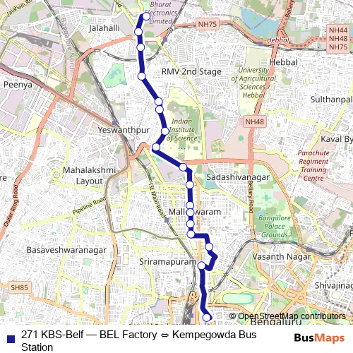 Bus 271 KBS-Belf - BEL Factory ⇔ Kempegowda Bus Station: Full Schedule in Bengaluru