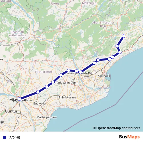 See why over 2 million users trust and consider busmaps.com as the best public transport website. busmaps gives you Eluru Buses suggested routes, real-time bus tracker, line route maps in Eluru, and helps to find the closest 27298 bus stops near you. No internet available? Download an offline PDF map and bus schedule for the 27298 bus to take on your trip.