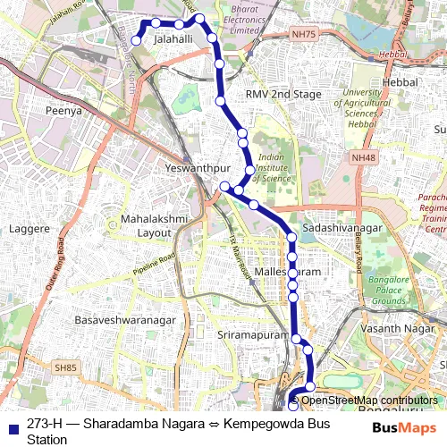 The first stop of the 273-H bus route is Kempegowda Bus Station and the last stop is Sharadamba Nagara. 273-H (Sharadamba Nagara ⇔ Kempegowda Bus Station) is operational during everyday.