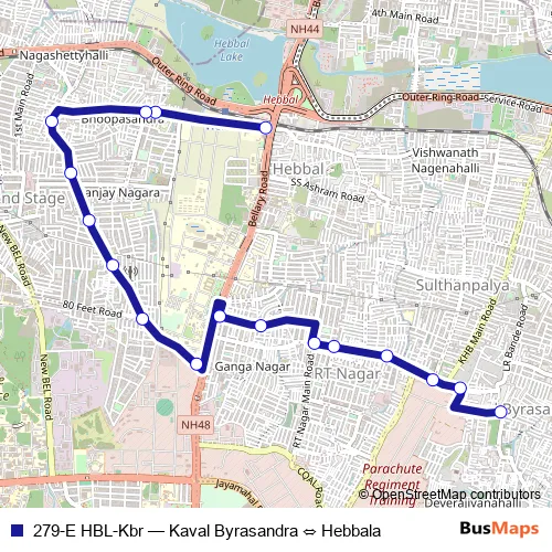 Bus 279-E HBL-Kbr - Kaval Byrasandra ⇔ Hebbala in Bengaluru: Stops & Timetable