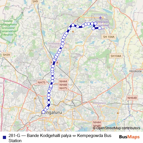 Bus 281-G - Bande Kodigehalli palya ⇔ Kempegowda Bus Station in Bengaluru: Stops & Timetable