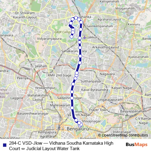 Click here to view the nearest 284-C VSD-Jlow - Vidhana Soudha Karnataka High Court ⇔ Judicial Layout Water Tank bus stop.