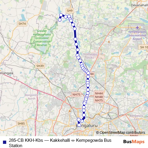 Kempegowda Bus Station. 285-CB KKH-Kbs (Kakkehalli ⇔ Kempegowda Bus Station) is operational during everyday.