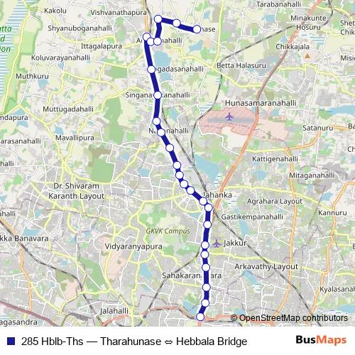 Bus 285 Hblb-Ths - Tharahunase ⇔ Hebbala Bridge: Full Schedule in Bengaluru