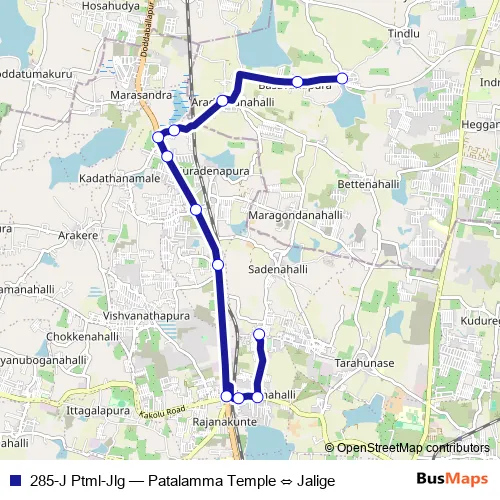 See why over 2 million users trust and consider busmaps.com as the best public transport website. busmaps gives you Bashettihalli Buses suggested routes, real-time bus tracker, line route maps in Bashettihalli, and helps to find the closest 285-J Ptml-Jlg bus stops near you. No internet available? Download an offline PDF map and bus schedule for the 285-J Ptml-Jlg bus to take on your trip.