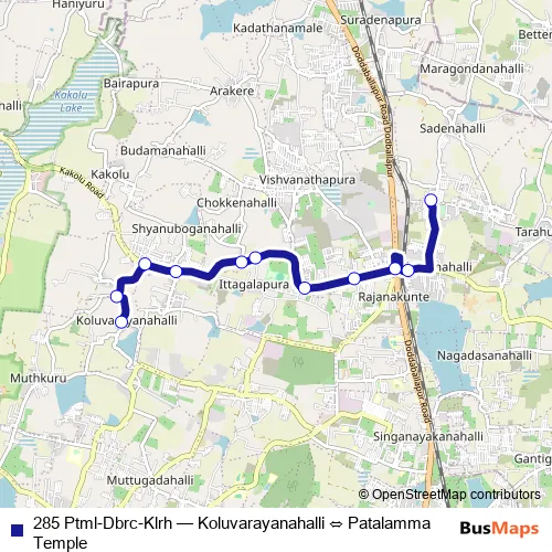 Bus 285 Ptml-Dbrc-Klrh - Koluvarayanahalli ⇔ Patalamma Temple: Full Schedule in Bengaluru